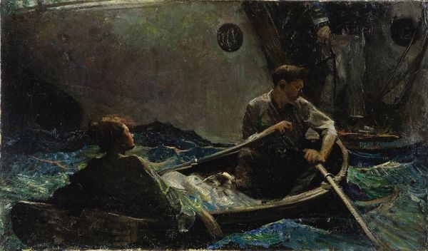 Albert Edelfelt made this oil painting, titled 'In The Outer Archipelago', using brushes and paint, traditional art materials. However, rather than depicting a historical scene or wealthy patron, Edelfelt shows us working-class folk. The rough texture of their clothing, and the worn surfaces of the wooden poles they carry, are carefully described using layers of paint, demonstrating the artist’s close observation and technical skill. The artist's focus seems to be less on the individuals themselves, and more on their labor as a fact of everyday life. The weight of the wood they carry seems palpable, and the scene speaks volumes about the realities of working-class life in the outer archipelago. In this way, Edelfelt elevates the lives of ordinary people, treating them with the same care and attention typically reserved for more traditionally ‘artistic’ subjects. This is one of the ways in which art expands to acknowledge all aspects of society, not just the privileged few.