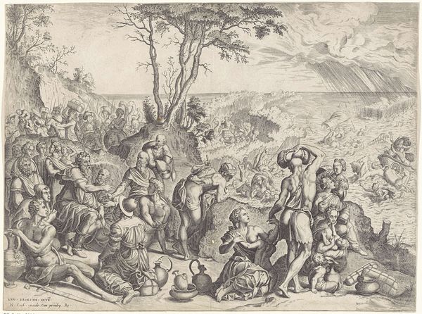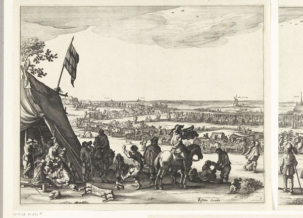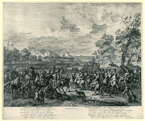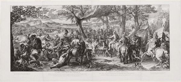 Editor: Here we have Rubens' "Henry IV in the Battle of Arques", an oil painting. The sheer scale is what strikes me, and the way the figures blend into a vast landscape. What can you tell me about its interpretation? Curator: This painting invites us to think about how power is constructed and represented. Rubens wasn't just painting a historical event; he was actively participating in myth-making. Consider the political context: Who commissioned this work, and what message were they trying to send about Henri IV and his reign? What notions of masculinity and leadership are present? Editor: So it's less about the battle itself and more about the image Henri wanted to project? Curator: Exactly! Think about the Baroque style itself—the drama, the dynamism. How does that contribute to the overall message? And whose stories are being told and whose are being left out of the historical record? Where are the common people? Where are the impacts of this conflict on society? Editor: I never considered the visual language of the Baroque era itself as a political statement. So the sweeping scale and dramatic action, they amplify the desired message, right? Curator: Precisely. It’s a crafted narrative designed to legitimize power. Looking closely, we can question those very claims. What do you think about the composition in terms of foregrounding certain figures over others? Who are we meant to focus on? Editor: That's fascinating, I see the figure of Henry on his horse. By questioning those choices, we can unravel a deeper understanding of the work's cultural significance. Thanks for shedding light on that! Curator: My pleasure! Thinking about art as a form of rhetoric opens up a world of possibilities for interpreting not just historical paintings, but art in general.