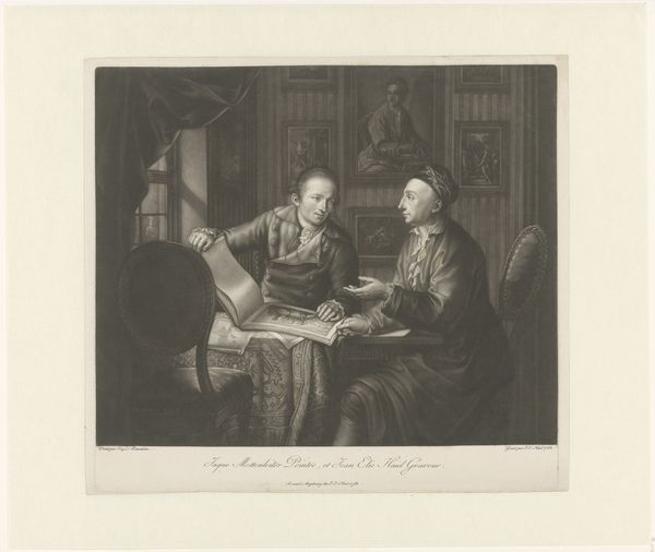 Hugo Bürkner created this print, "Interior with a Girl Reading to a Man," sometime in the 19th century, capturing a quiet domestic scene. During this period, the roles of women were often confined to the domestic sphere, literacy, and acts of service, as we see with the young woman reading aloud. The man, presumably older and in a position of authority, is the recipient of her service. The image speaks volumes about gender and generational dynamics. Is this an image of care, where knowledge is gently passed down through the act of reading? Or is it a portrait of dependency, a subtle reinforcement of societal roles where women are relegated to supportive roles? Bürkner's composition invites us to reflect on the labor, seen and unseen, that women perform. It subtly questions the traditional narratives of power and dependence that shaped 19th-century society.
