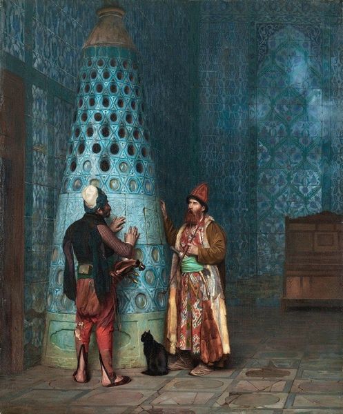 Ludwig Deutsch painted this oil on canvas, "The Guard," sometime between the late 19th and early 20th centuries. It's all about layering and detail, Deutsch takes a lot of time to describe the world in front of him, and the result is fascinating. I’m really drawn to how the steam from the incense almost blends into the stone wall behind it, and it’s difficult to tell whether the steam is actually coming from the smoking incense or just the way that the artist has laid down the paint to depict the rough texture of the wall. The guard’s clothes are smooth and luminous, in contrast. It’s a really gorgeous study of contrasts. The piece makes me think of the work of Jean-Léon Gérôme, another Orientalist painter who shared an interest in historical accuracy and narrative drama. But where Gérôme goes for spectacle, Deutsch is more intimate, offering us a quiet moment of contemplation. This isn't just a painting; it's an open question.