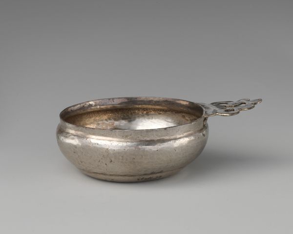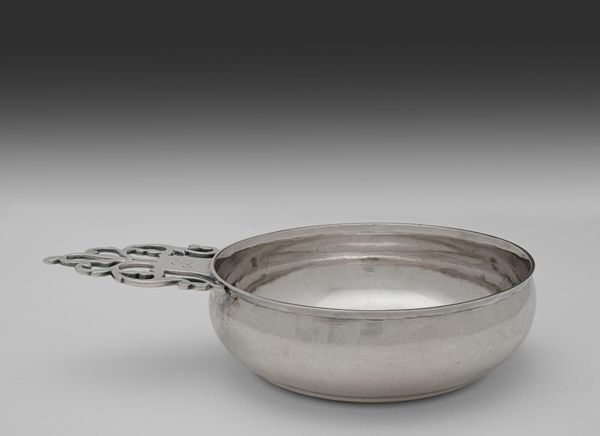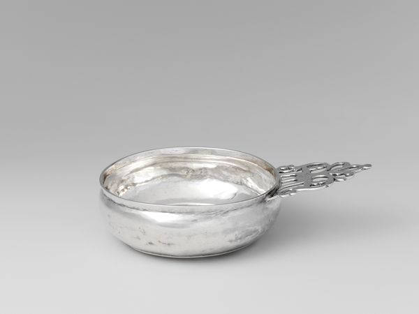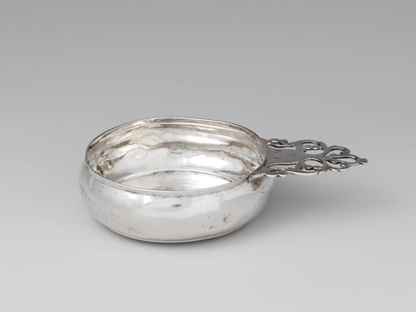 Editor: Here we have the "Punch Strainer" by Daniel Parker, currently residing at the Harvard Art Museums. It's so simple, just shiny metal with holes, and yet, somehow, so elegant. What story do you think it has to tell? Curator: Oh, this little strainer sings of gatherings, doesn't it? I imagine it perched on the edge of a glass bowl, catching bits of fruit as a convivial host ladles out cheer. Do you think it has a song in it? Editor: A song? That’s an interesting idea! It feels more like a quiet observer to me. Curator: Perhaps both! A silent witness to laughter and secrets, its elegance reflecting the aspirations of a bygone era, don’t you think? Editor: I guess so. I’d never considered that a functional object could hold so much… history. Curator: Exactly! Everyday objects often whisper the loudest stories.