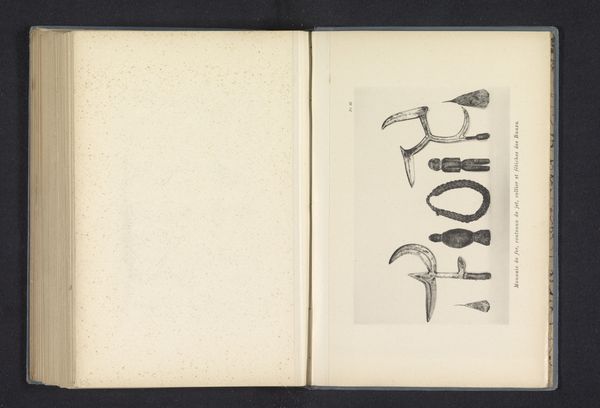 Editor: So, here we have Franz Thonner’s "Vijf messen van de Ngbandi," from 1896, rendered in ink on paper. It looks like an illustration from a journal or book. What strikes me is the almost clinical way these weapons are displayed, but they are quite peculiar in form. What do you see in this piece? Curator: It's a fascinating display of cultural memory. These aren't simply tools, but symbols laden with meaning for the Ngbandi people. Each curve, each point carries psychological weight reflecting their history, beliefs, and societal structures. Editor: Could you elaborate on the symbolism? What do these shapes communicate, beyond their obvious function? Curator: Consider the shape of the blades, for example. The curved blades suggest an understanding of harvesting crops but when applied to blades might speak of capture. Do you agree that is their utility? Editor: I see what you mean about harvest. They are more like small axes than weapons, meant for slashing more than stabbing, right? Curator: Precisely! Now consider their arrangement, presented as if in an anthropological study but are tools of labor and conflict intertwined in daily life. These blades have practical applications. But what could that signal, and how might this drawing itself affect or distort how they’re understood? Editor: The neutral background definitely strips away context and purpose. Without knowing the cultural context, it's easy to reduce them to mere objects. I never thought a drawing could do all that! Curator: Exactly! By exploring these layers, we recognize art's powerful role in preserving, and also changing cultural narratives. This study helps decode messages passed through generations. It really gives me food for thought. Editor: Me too! It’s eye-opening how much an image of an object can reveal about a culture's entire worldview.