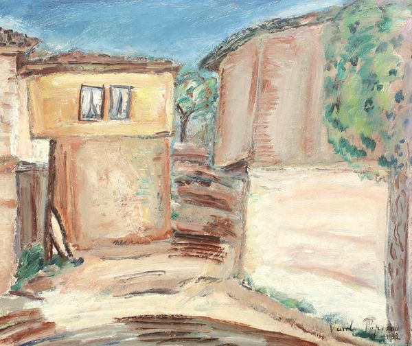 Francisc Sirato made this watercolour painting, entitled "Houses in Balcic," sometime during his career. The image presents a seemingly tranquil scene of village life, but it’s worth considering the cultural and political context that shaped Sirato’s artistic vision. Painted in the first half of the 20th century, this work reflects a broader interest among Romanian artists in depicting rural life and landscapes. This interest, often tied to nationalist sentiments, sought to define a distinct cultural identity rooted in the Romanian countryside. Balcic, with its unique blend of cultures and picturesque scenery, became a popular subject for artists seeking to capture the essence of Romanian identity. To truly understand this painting, we can explore archives of Romanian cultural history, studies of the Romanian art scene, and writings about the cultural politics of the interwar period. These resources can reveal the complex interplay between art, identity, and power in Sirato's Romania.