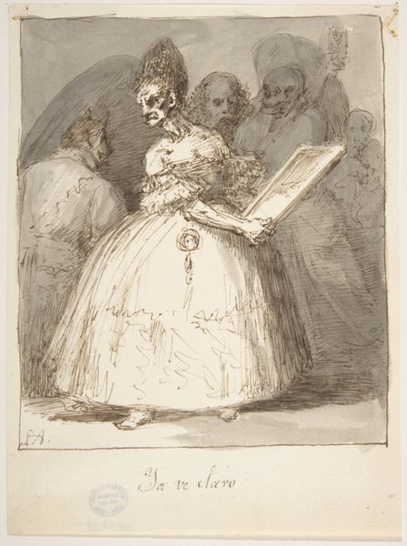 This is "Hilan delgado," a print made by Francisco de Goya, who lived from 1746 to 1828. Goya's chosen process, etching, is a powerful method for creating linear detail and tonal variation, achieved through the careful application of acid to a metal plate. Notice how the etched lines define the figures' forms, emphasizing their age and physical decay, but also drawing our attention to the textures of their clothing and the objects surrounding them. This work's social significance comes from its unflinching portrayal of poverty and marginalization. The printmaking process itself, with its reliance on skilled labor and the production of multiples, mirrors the social issues of labor and class that Goya explores within the image. By focusing on the materials and making, we can appreciate how Goya challenges traditional distinctions between fine art and craft, using a 'replicable' medium to tackle complex social themes.