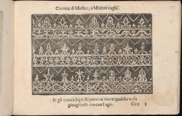 This page, created by Cesare Vecellio in the 16th century, is a woodcut print from a pattern book intended for lacemakers. Woodcut is a relief printing process. The artist carves away the areas that are not to be inked, leaving the design raised on the surface of the woodblock. Ink is then applied to the raised areas, and the image is transferred to paper through pressure. Notice how the stark contrast between black and white defines the intricate patterns. The designs showcase various lace motifs, reflecting the demand for new patterns during the Renaissance. These pattern books helped spread the techniques of lace making, which were in high demand by elite consumers. Lace production provided employment for many women, but it also relied on their underpaid labor. Looking closely at the materials and the processes involved in production, we can fully appreciate the rich history and social context embedded within this seemingly simple design. It challenges traditional notions of fine art, highlighting the skill and artistry inherent in craft practices.