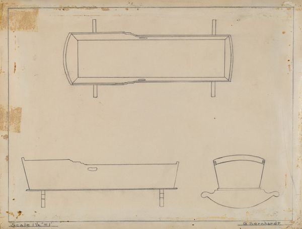 Arthur Wegg made this drawing of a foot warmer with what looks like a graphite pencil on paper. The lines are delicate, tentative even, like he’s thinking through the object as he draws it. Look at how the composition is broken up into four different views. It's a real nuts-and-bolts approach. The texture of the paper is visible, giving the drawing a subtle, handmade feel. The way the lines intersect and overlap creates a sense of depth and dimension. There’s a real sense of care and attention to detail, like he’s trying to capture every aspect of this foot warmer. The drawing reminds me a little bit of Hanne Darboven's systematic approach to mark-making, but with a touch more warmth, maybe because it’s a foot warmer, not a mathematical equation! In both, there’s a sense of the artist working through an idea, figuring things out as they go. Art isn’t always about perfection, it can also be about the messy, human process of trying to understand the world around us.
