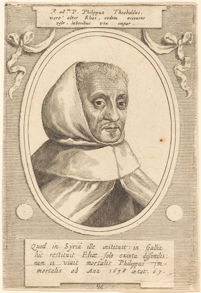 Etienne Picart created this portrait of Jean de la Grange using etching, a technique that allows for precise and intricate linework. The oval composition frames the cardinal, whose hands are clasped in prayer, creating a sense of piety. The contrast between light and shadow models the cardinal’s face and vestments. Picart masterfully uses line to define form and texture, constructing a visual language that speaks to the status and solemnity of the subject. Semiotically, the cardinal’s attire functions as a signifier of his ecclesiastical authority and position. The etching’s structure invites interpretation beyond the literal. The lines, carefully etched, not only depict but also evoke a sense of the cardinal’s inner reflection and spiritual commitment. It is through these formal qualities that the artwork communicates complex ideas about power, faith, and representation.