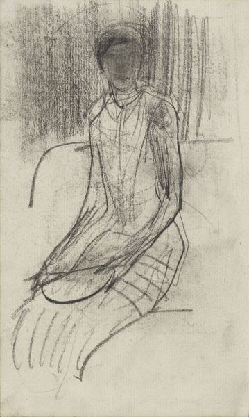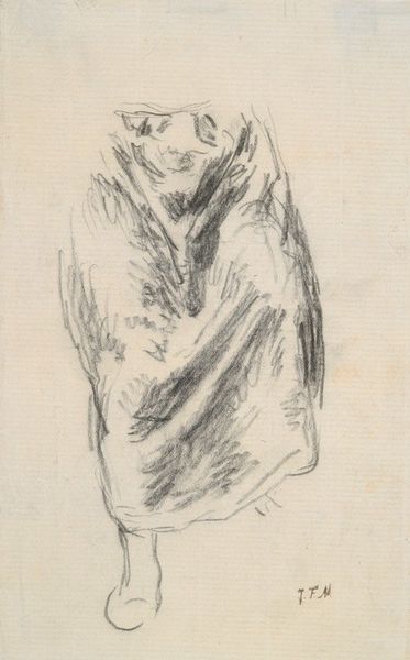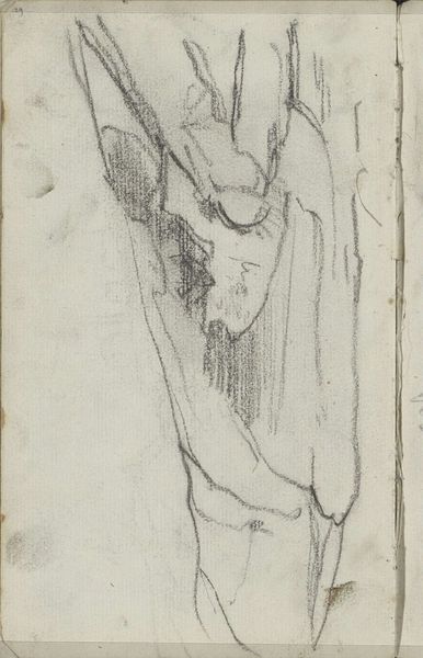 Curator: Welcome. Before us, we see "Standing Clergyman with Glasses", a drawing in ink and pen by David Bles, created sometime between 1831 and 1899. Editor: It strikes me immediately as a piece imbued with melancholy. The lines are so delicate, almost hesitant, as if the clergyman is weighed down by the world. Curator: Note how Bles uses the economy of line to suggest form and volume. The figure is not rigidly defined; rather, he's suggested through subtle modulations in the pen strokes, especially in the drapery. The structural integrity relies on the careful weighting of these lines. Editor: And those glasses perched on his nose, almost comically oversized, contribute to this feeling. The artist’s depiction of this religious man brings up interesting questions about social roles and religious authority in Dutch society at the time. It seems more of a critique. Curator: While social context certainly enriches our understanding, let’s not overlook the materiality. The absorption of ink on paper is key; those subtle imperfections lend an authentic quality to the artwork, emphasizing the handmade. See also the artist's mark. Editor: I agree. The sketch certainly highlights Bles' skill. Considering it now sits in the Rijksmuseum, it's interesting how its value shifts. Once a possible study or quick sketch, now, within a museum, it's given elevated status. Curator: The institutional framework always mediates our engagement with art. It redefines the intention and audience, impacting our semiotic reading. Editor: True. Ultimately, Bles gives us an evocative depiction of an individual but also speaks to the ever-changing context that we, as viewers, bring to the art object. Curator: Yes. The genius lies in Bles’ skillful execution of the line to draw us closer into considering structure and intent within the historical perspective that's provided.