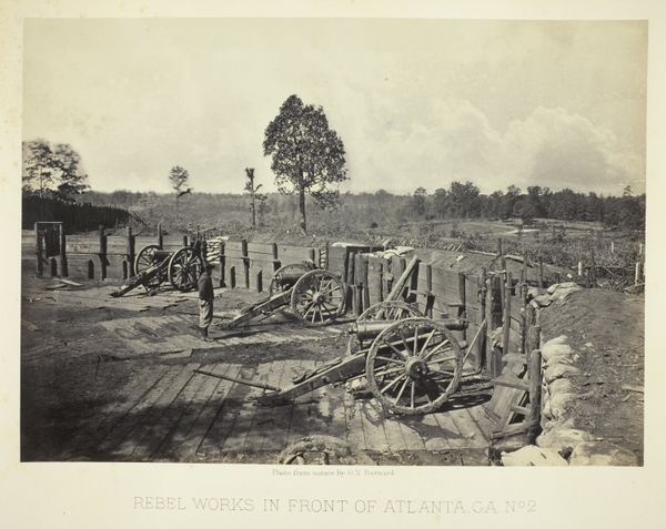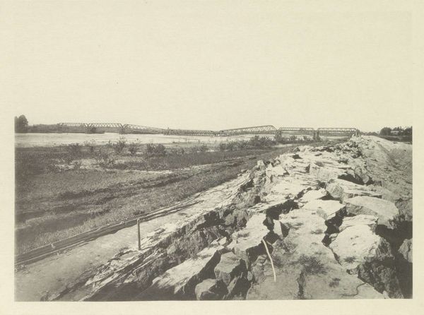 Editor: This gelatin silver print, "Ruins of Stone Bridge, Bull Run," was captured by Barnard & Gibson in 1862. It's striking how the desolation of war is so clearly present in the ruined bridge and barren landscape. What story do you think this image is telling? Curator: This photograph, taken shortly after the First Battle of Bull Run, offers a powerful commentary on the romanticization of war often seen in earlier paintings. Consider the context: photography was still a relatively new medium. Its purported objectivity offered a stark contrast to the heroic narratives artists often crafted. This image directly confronts the viewer with the devastating consequences of conflict, doesn’t it? Editor: It definitely does. The ruined bridge is a powerful symbol, but is that solitary figure just watching, or does it play another part in this story? Curator: Precisely. He seems like an observer amidst the destruction. Note how the photographer has framed the image: The bridge occupies the foreground, emphasizing its importance, while the distant figure perhaps represents the lasting human impact of such events. Does it make you consider the socio-political tensions that shaped this specific conflict? Editor: Yes, absolutely. Knowing this photograph was taken during the Civil War period brings even greater weight to the devastation captured. Curator: And think about the intended audience. These images were often circulated to inform the public, potentially influencing opinions about the war. Its circulation through photography creates a stark comparison of what citizens might expect from battle, rather than how gruesome and real conflict can truly be. Does that change your opinion? Editor: It shifts it towards a more comprehensive understanding of the photograph's function and effect at the time. I hadn’t fully considered the public role it played. Thanks. Curator: It’s a crucial aspect! We shouldn't only regard images as mere representations of historical events but powerful elements in shaping public sentiment and memory.