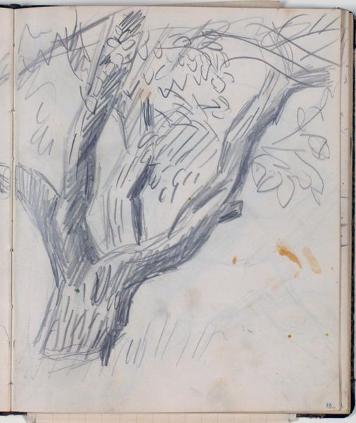 Curator: We are looking at "Plantestudie" a pencil drawing executed by Niels Larsen Stevns, between 1930 and 1936, held here at the SMK. Editor: The immediate impression is one of fragility. A single, slender stem gives rise to an almost chaotic burst of foliage, sketched with such lightness it feels ephemeral. Curator: Indeed, but note how the seemingly simple subject speaks to Stevns’ larger artistic project. He returned again and again to studies of nature. Considering the social and economic context of the interwar years in Denmark, this intense focus on the natural world becomes almost a radical act. Escaping the noise of a quickly modernizing world by representing simpler things. Editor: Perhaps. Though the "noise" to which you refer is far removed from the precision and elegance I observe in the overall composition. The contrast of the thick, vertical line with the delicately looping upper region gives the drawing its underlying energy. Curator: That contrast to me reflects tension between the artist and his subject matter, questioning, if he's portraying nature as comforting and beautiful, or just portraying it. Was he perhaps looking to establish a new, truly Danish approach to art outside established notions? Editor: While you focus on external and societal questions, I’m drawn back to the internal structures. Look at the way the leaves and petals are composed: almost geometrical figures held in contrast by a dynamic composition. I notice semiotic implications too. Is it that geometric rigidity you’re questioning? Curator: Potentially. As such a study I can consider it from a lens outside just aesthetics, though I am sure we can appreciate both the geometry, and what else it might signify. Thank you. Editor: My pleasure, though I think it is important to consider that the value isn't always about symbolic tension. I've appreciated observing this work today.