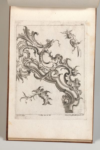 This print presents various Rocaille designs by Jacob Gottlieb Thelot. These swirling, asymmetrical forms, inspired by shells and pebbles, were the essence of the Rococo style. Observe the dominance of the ‘rocaille’ motif itself. It appears as a C-shaped curve, often adorned with foliage, evoking a sense of natural, organic growth. This motif isn’t entirely novel; it echoes the acanthus leaves of classical antiquity, which symbolized triumph and immortality. We find its resurgence during the Renaissance and now, transformed, during the Rococo period. Consider the psychological implications. The Rococo style, with its emphasis on lightness, elegance, and playful asymmetry, emerged as a reaction against the more rigid and formal Baroque. It reflects a shift in cultural values, from the grandeur of absolutism to a more intimate and personal expression. This symbol's journey is a prime example of how motifs evolve, adapt, and resurface in response to the ever-changing currents of human experience.