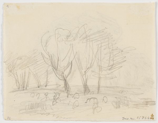 Claus Johansen made this pencil drawing, Parti ved Emdrup, which translates as 'Part of Emdrup', sometime in his life, but we're not sure when. The marks feel exploratory, like he's thinking through the forms, trying to get a sense of the place. It’s all about capturing the essence with these quick, searching lines. Look at the way he builds up the trees with scribbled marks, and how the landscape is just suggested. It’s not about detail; it’s about feeling. The texture of the paper becomes part of the drawing. There's a lovely rhythm in the repetition of the forms, those rounded shapes of the trees against the horizon line. It reminds me a little of the early sketches of Van Gogh, where you can see him working out his ideas, almost like a visual diary entry. It shows art as a journey, not just a destination.