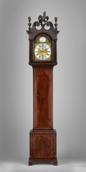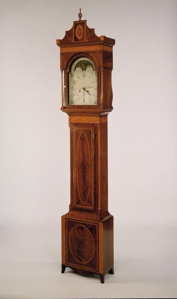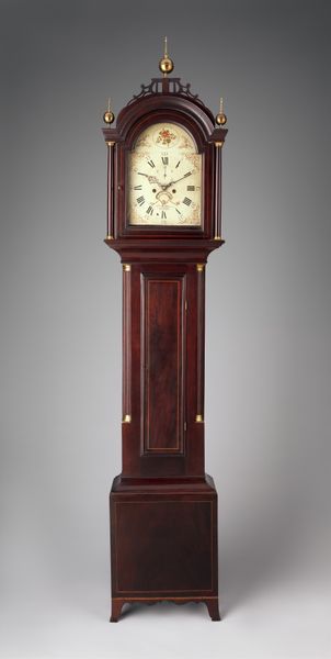 This tall clock was crafted by John Townsend, a prominent Quaker cabinetmaker from Newport, Rhode Island, sometime in the late 18th century. Townsend's religious beliefs likely influenced his commitment to simplicity and quality craftsmanship, evident in the clock's elegant design and meticulous construction. Consider the historical backdrop: Newport, a bustling port city, thrived on the triangle trade, deeply entangled with the slave trade. While Townsend, as a Quaker, was part of a religious community that formally condemned slavery, he still operated within a society built on this exploitation. The clock, a symbol of status and wealth, subtly reflects this complex relationship. Its very existence speaks to the economic prosperity derived, in part, from the exploitation of enslaved people. The clock stands as a reminder of the intricate connections between artistry, commerce, and the painful legacy of slavery in early America.