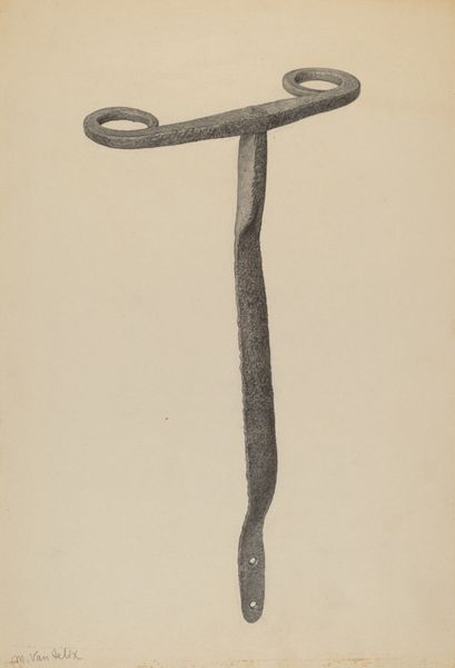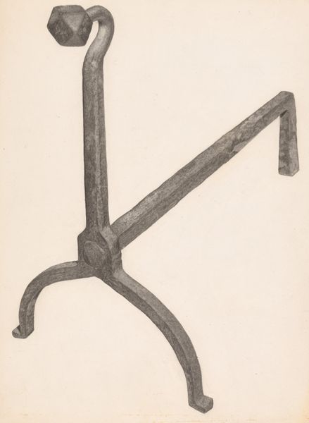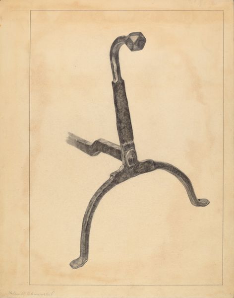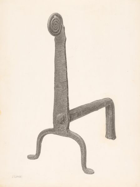 This is a drawing of an Andiron, made by Alexander Berth at an unknown date using graphite and watercolor on paper. It invites us to consider the role of decorative arts within the broader social history of art, a discipline long dominated by painting and sculpture. Berth, a master draftsman, elevates a functional object to the level of art, prompting questions about taste, class, and cultural values. Made in the United States, the andiron would have sat within a fireplace, an important feature of domestic life. Berth's interest in capturing its design reflects an appreciation for craftsmanship and the artistry embedded in everyday objects. By isolating it on the page, the artist asks us to re-evaluate its aesthetic qualities beyond its utilitarian purpose. To truly understand this work, one could delve into design history, exploring the cultural significance of metalwork and the relationship between art, industry, and the home. The history of decorative arts has often been ignored in favor of other more high-minded pursuits, but it is through works such as this that such traditions are challenged.