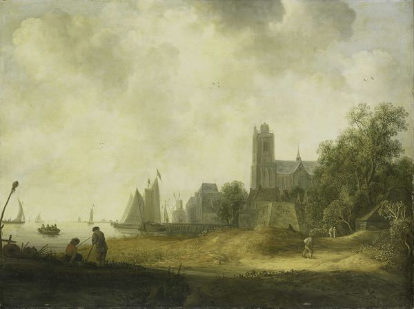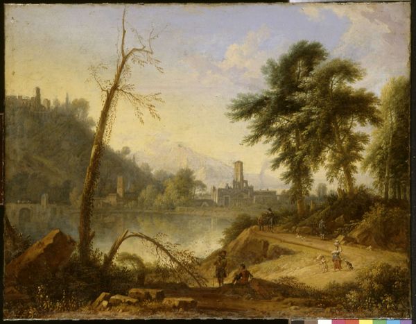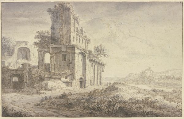 Emanuel Murant created this Italian Landscape with Antique Ruins on canvas in the 17th century. With browns and tans, he created what appears to be a very tactile surface in this painting. The color, weight, and form of the architectural structure is given its qualities by the thickness of the layers. The artist employed the traditional technique of oil painting to depict what appears to be the remains of a grand building, perhaps a villa or civic structure. The use of this technique suggests Murant engaged with a long lineage of skilled artistic tradition, whilst capturing the essence of a rustic landscape and the everyday lives of its inhabitants. These are not traditional or industrial materials, but in their creation, tied to wider social issues of labor and politics of the time period. Ultimately, it is the interplay of materials, making, and context that allows us to fully appreciate the depth of meaning in Murant's work, challenging the perceived boundaries between fine art and craft.