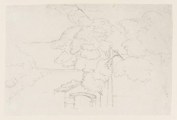 Editor: This delicate graphite drawing, "Pine Trees, Borrowdale," by Joshua Cristall, captures a cluster of trees. I'm struck by the contrast between the solid trunks and the feathery foliage. What stands out to you in terms of its formal qualities? Curator: The composition is intriguing. Observe the strategic placement of the trees. The artist creates depth through line variation and the subtle suggestion of light and shadow. Note how the minimal ground plane anchors the composition, allowing the eye to focus on the arboreal forms. Editor: So it's less about representing a specific place and more about exploring form and light? Curator: Precisely. Consider the artist’s choice of medium. Graphite allows for nuanced gradations, emphasizing texture and structure. The drawing transcends mere representation, becoming an exercise in visual language. Editor: I see it now. The economy of line really forces you to consider each mark. Thanks for pointing that out! Curator: My pleasure. It is through such focused examination that we truly engage with the essence of the artwork.