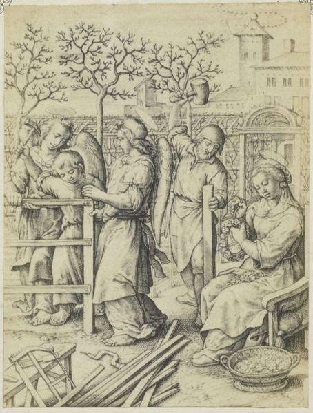 Lucas Cranach the Elder made this delicate drawing of Abraham and the Three Angels with pen and brown ink on paper. The artwork's visual impact is intrinsically linked to the qualities of the materials employed. The brown ink delicately modulates tone and shadow. Lines define forms and drapery, while the paper's smooth surface allows for fine detail. The drawing's execution reveals Cranach's mastery of the pen, achieving depth, texture, and a range of tonal values with a seemingly simple medium. Cranach was working in a period where printmaking was on the rise and drawing served as a key means of production for these images. So, this work speaks to the broader social and economic context of art-making in the 16th century, where traditional artistic skills intersected with emerging industries. In appreciating the artwork, we recognize the vital role of materials and making. This challenges conventional hierarchies, placing craftsmanship and technical skill alongside artistic invention.