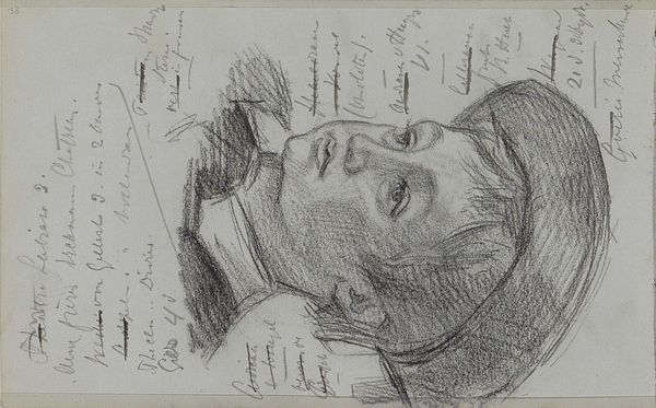 Editor: This is Johan Thomas Lundbye's "Study after Napoleon's Death Mask" from 1839, a pencil drawing. The effect of the tightly rendered lines gives an impression of profound stillness, even sleep. What compositional elements strike you as most significant? Curator: Note how Lundbye manipulates line and tone to model the form. The hatching technique is remarkably consistent, building volume through density of line rather than stark tonal contrast. Observe how this technique impacts our perception of texture: skin seems smooth, almost porcelain. What does the repetitive nature of this hatching evoke for you? Editor: There’s a methodical, almost clinical feel, especially when paired with the subject matter: a death mask. Curator: Precisely. Consider also the shallow depth of field. The focus remains intently on the facial features, reducing everything else to supporting background, ultimately compressing the visual field and intensifying the viewer’s experience. Editor: So, the restrained palette and tight focus serve to amplify the solemnity of the image? Curator: Indeed. By restricting the colour and narrowing the focal range, the drawing becomes an exercise in essential forms. The artist seems to remove artifice, pushing the boundary between study and finished work. Editor: I see that now. It’s less about Napoleon and more about form and line. Curator: Precisely. Editor: This has definitely given me a fresh perspective on looking at Lundbye’s formal choices.