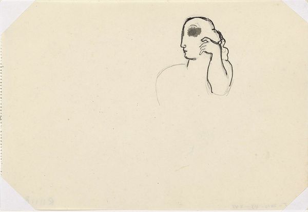 Mikuláš Galanda made this drawing, Desire, with ink and collage on paper. The drawing is tentative, uncertain; just a few lines describe the form of the head, but the lips are boldly filled in with red. It's like the mouth is the only thing the artist is sure of. And then there's that stark, black shape. What is it? It's so solid compared to the rest of the image. The contrast between the careful, thin lines and the bold, flat shapes is really striking. It's like the artist is thinking through the image as they're making it. Each mark feels very conscious, a decision being made in real-time. My eye keeps going back to the point where the red lips meet the dark shape. There’s a tension there – a meeting point between desire and the unknown. You see this type of figuration in the work of Picasso and Braque. Galanda, like them, seems interested in how we see, and how we make sense of the world through fragmented forms.