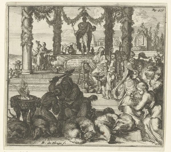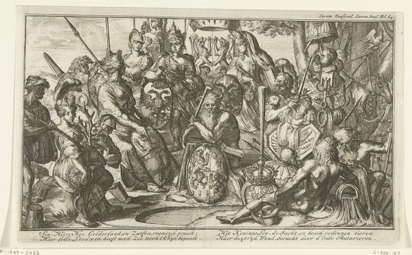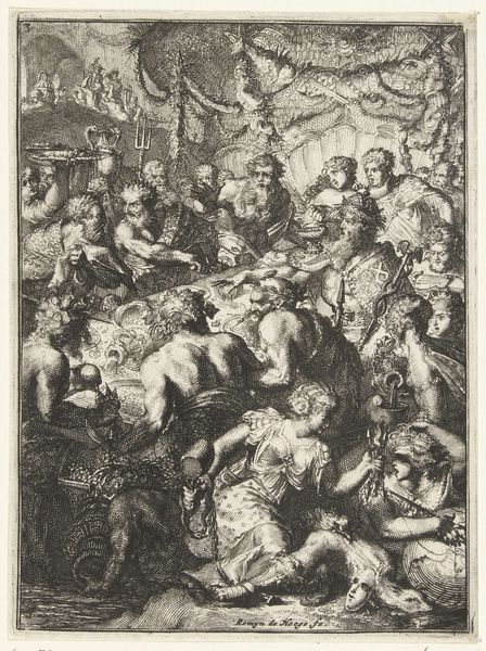 Romeyn de Hooghe created this allegory of Utrecht using etching around 1672-1708. It’s a fascinating glimpse into the social and political context of the Dutch Golden Age. The scene is rich with symbolism, reflecting the complex power dynamics of the time. We see figures who represent the liberated Utrecht, surrounded by symbols of authority and freedom. Yet, this image also highlights the stark class divisions within Dutch society. The opulence and grandeur contrast sharply with the figures at the bottom, who seem to represent the struggles of the common people. What strikes me most is the sense of controlled chaos. There is a tension between the celebration of liberty and the underlying social realities. The artist seems to be asking: who truly benefits from this newfound freedom? Consider how this artwork makes you feel, what does it say about the price of freedom and the cost of inequality?