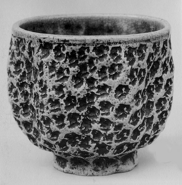 This striking teabowl was crafted by Makuzu Kōzan I, also known as Miyagawa Toranosuke, during a period when Japan was navigating rapid modernization and engagement with the West. Kōzan's work embodies a fascinating intersection of tradition and innovation. As Japan opened up to global trade, artists like Kōzan were tasked with preserving Japanese artistic heritage while also creating works that appealed to international tastes. He mastered a variety of ceramic techniques, often blending them in a single piece. The rich, dark glaze of this teabowl, with its network of fine cracks, is a testament to his technical skill, but it also evokes a sense of wabi-sabi, the Japanese aesthetic of finding beauty in imperfection and impermanence. This piece stands as a reminder of the complex cultural negotiations that occur when societies encounter one another, and the deeply personal ways in which artists respond to these shifts.