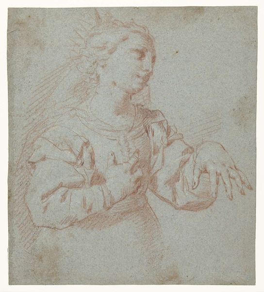 Editor: Here we have Cornelis Saftleven’s "Zittende Vrouw," created in 1634. It’s a pencil drawing, and what strikes me is how the textures of the clothing, especially those ruffled sleeves, seem to dominate the composition. What's your take on this drawing? Curator: Well, let’s consider the materiality itself. It’s just pencil on paper, a relatively accessible and inexpensive medium, yet it’s rendering the sumptuousness of upper-class Dutch fashion. The labor invested in producing that garment – think of the spinning, weaving, tailoring – all that work is flattened, re-presented by Saftleven's comparatively quicker act of drawing. Editor: That’s a good point. So, you are saying that there is tension between the materials used and what those materials are depicting. Could it be interpreted as a commentary on the Dutch Golden Age, its class structure, maybe? Curator: Precisely. The availability of paper allowed for wider circulation of images, making luxurious styles like these accessible to a broader audience through drawings and prints, yet distanced from the real economic investment necessary for actual possession. Do you see any implications there? Editor: So, is this pencil drawing almost democratizing this woman’s likeness, even if the sitter remains in a completely different social sphere from the viewer? Curator: Absolutely. It brings the trappings of wealth to a different plane of consumption. The drawing itself becomes a commodity, a stand-in for real material wealth. Look closely: can we infer, perhaps, Saftleven's intentions from his particular handling of line and texture? What aspects does he emphasize or downplay, and how might this affect our reading of social dynamics? Editor: That’s fascinating. I never thought about it that way, but now I am really noticing how the ephemeral nature of the drawing is contrasted by the suggestion of elaborate attire. It definitely adds another layer of meaning. Thanks for sharing that insight. Curator: My pleasure! It's about questioning whose labor makes such imagery, such luxury, visible. Always look at the relationship between the art object and its socio-economic context.