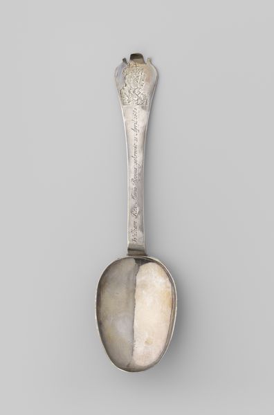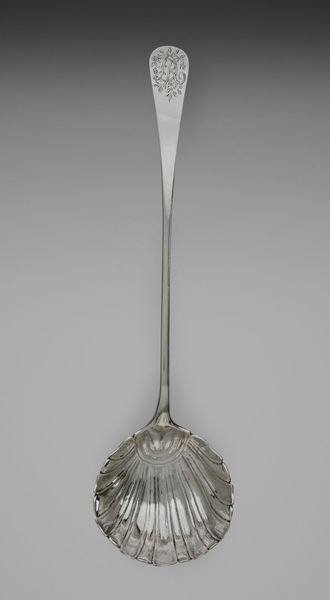 Editor: This is one of two Ragout Spoons by Paul Revere. It's made of silver, and it's quite long. It strikes me as incredibly elegant, but also functional. What do you see in this piece? Curator: I see a fascinating interplay between function, status, and the labor of crafting. Consider the silver itself – a material tied to wealth and power. Who owned this spoon, and what kind of labor practices were involved in both mining the silver and crafting the object? Editor: That's interesting. I hadn't thought about the mining aspect. Curator: And think about the term "ragout spoon." What did people eat with this spoon? Who prepared it, and what does that tell us about social hierarchies of the time? The spoon becomes a lens through which we can examine material culture and social relationships. Editor: So, it's not just a spoon, but a historical artifact of production and consumption. Curator: Precisely. Every object tells a story about its making and use. I've learned a new way of seeing Revere's work.