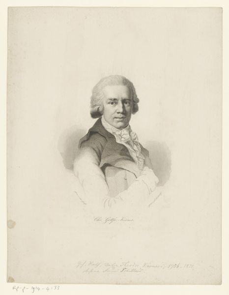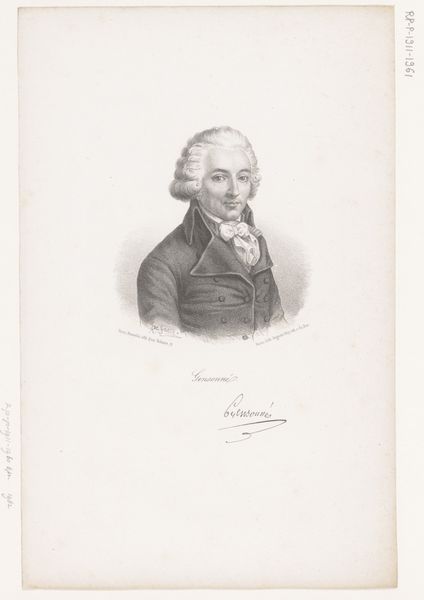 Editor: Here we have "Portrait of Gerard van Spaendonck," a pencil drawing from around 1826-1850 by Nicolas Maurin. It's incredibly detailed, especially the face and hair. What strikes me is how formal and almost stately the subject appears. What can you tell me about this piece? Curator: Well, it's a fascinating example of academic art and portraiture functioning within specific societal frameworks. Consider the sitter, Gerard van Spaendonck. He was a celebrated flower painter. In portraying him this way, Maurin is not simply creating an image, but contributing to the construction of Van Spaendonck's public persona and the status of artists more generally. Editor: So it’s about elevating the role of the artist in society? Curator: Precisely. The inclusion of the medal, his clothing, even his hairstyle – they all contribute to a deliberate image of respectability and achievement. Ask yourself, who was commissioning these portraits? What message were they intended to convey about the sitter's standing and contributions? This kind of imagery reinforces institutional hierarchies and the values of the era. Think of how salons at the time would have exhibited this work; imagine how it may have impacted audiences, not just of fine art but ideas. Editor: That makes a lot of sense. It's like a visual representation of his social capital. I hadn't considered how carefully constructed that image would have been to reinforce his position. Curator: Indeed. The portrait then becomes more than just an individual likeness, but a socio-political statement about art, artists, and their place in the broader culture. It also suggests the intended audience – those who understood the codes and cues of status displayed within the artwork. Editor: Wow, that’s changed how I see it entirely! I will certainly be thinking about the cultural forces shaping what’s presented. Thank you. Curator: My pleasure. It's this understanding of the social and historical contexts that makes art truly resonate.