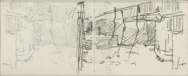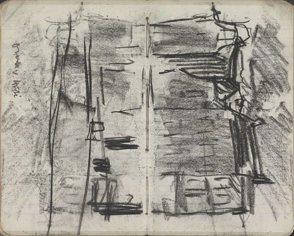 George Hendrik Breitner captured this charcoal drawing, titled 'Gezicht op de Dam te Amsterdam met de Nieuwe Kerk,' in his sketchbook, offering us a glimpse into late 19th-century Amsterdam. Breitner was known for his gritty, urban scenes, a stark contrast to the romantic landscapes favored by many of his contemporaries. What we see here is not a picturesque postcard, but a raw, almost hurried impression of the city center. The sketch captures the mood and movement of a place undergoing rapid change. Breitner was interested in the lives of ordinary people, and he sought to represent the experiences of those living in an increasingly industrialized society. His work invites us to reflect on the relationship between urbanization, identity, and lived experience. What does it mean to find beauty and significance in the everyday? How do our surroundings shape who we are and how we see the world?