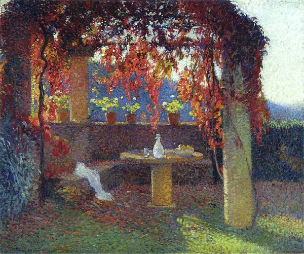 Henri Martin painted “Young Women in Terrace” in France, likely at the turn of the twentieth century, using an Impressionist style with a mosaic-like application of paint. The image seems to depict an informal scene of women in leisure, perhaps on holiday in a rural setting. Martin was a prominent figure in the Société Nationale des Beaux-Arts, which was founded as a dissident alternative to the official Salon system. These were important institutions that shaped the public reception of art. His style reflected a modern desire to capture fleeting moments of light and atmosphere. The idyllic setting and depiction of women evoke a sense of pastoral escape, perhaps reflecting a desire to retreat from the industrializing world. But we should ask, for whom was this escape available? It might be interesting to compare this artwork to others that reflect social realities for women in France at this time. To understand this painting better, we can explore the exhibition records of the Société Nationale des Beaux-Arts, and the critical responses to Martin’s work in the art press. Understanding the social and institutional context of the painting helps us to interpret its meanings.