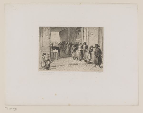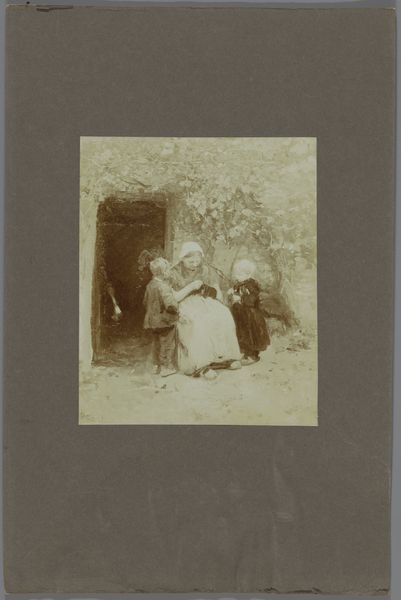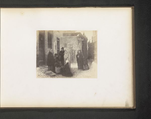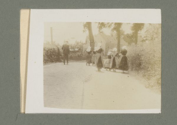 Curator: This is a photograph by A.G.A. van Eelde, likely taken in 1927. It's titled "Groep jongeren in Oudaghir, Le Figuig," which translates to "Group of young people in Oudaghir, Le Figuig," and it is printed as a gelatin-silver print. What do you make of it? Editor: There's something wonderfully austere about it. Stark light, the tones just hinting at life. A watchful group captured in what feels like a timeless, sun-baked place. It reminds me a bit of colonial-era postcards, but there's a quietness that undercuts that. Curator: It’s important to remember van Eelde’s social context here. Photography in this era often functioned as a tool for documentation, sometimes reinforcing prevailing social hierarchies, or exoticizing particular cultures. But, as part of that context, photos such as this can today invite different viewpoints of the time period. Editor: Absolutely, the photographic record offers a double-edged vision. What strikes me is the balance the photographer strikes. Despite its time, it captures them with a certain dignity. Do you think Van Eelde intentionally tried to approach things with this neutrality or do you see this more of an unavoidable result of the technologies available at that time? Curator: The question of intention is a tricky one. But I think a realism lens reveals how even “objective” depictions inevitably reflect a worldview. In that period many were turning away from pictorialism, embracing a starker representation, often highlighting social realities that might not be flattering. I find this shot, a good example of a style aimed at unfiltered presentation. Editor: You're right. Thinking about how art and cultural context shape photography… there is something deeply haunting about its stillness. The sun-drenched light almost feels symbolic now of the era in which this image was taken. A place and a time we can't return to and a scene of lives that have now passed, but immortalized in this print. It makes you wonder about their stories, and their community’s role within broader historical narratives. Curator: It invites us to contemplate not only the subjects, but also the photographer’s gaze, and the ever-evolving narrative we construct around images from the past. These faces echo the questions we bring to them, creating an experience, unique in every moment of contemplation.