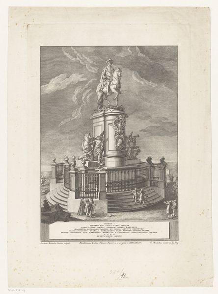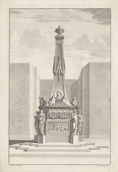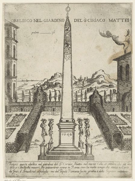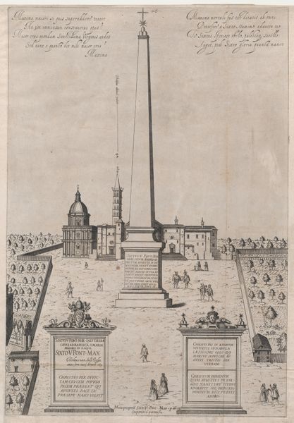 Editor: This engraving from 1544 depicts Trajan's Column, now residing in the Metropolitan Museum of Art. What immediately strikes me is its imposing presence against what appears to be a cityscape. What's your interpretation? Curator: Indeed. This image serves as a fascinating document of how classical power was being understood and re-presented in the Renaissance. Think about it: this print makes accessible, to a wider audience, a monument erected to celebrate imperial Roman power. It's not simply a rendering; it’s an active participation in the ongoing construction of history and authority. Editor: So it's about more than just visual accuracy; it's making a statement about power? Curator: Precisely. This column wasn't just about celebrating Trajan's victories, but embedding those victories, that imperial project, within the urban fabric of Rome itself. The spiral frieze is essentially a propaganda scroll writ large, displaying military campaigns in vivid detail for public consumption. Now, how does replicating this image in a print form, centuries later, change its function? Editor: I guess making it a print democratizes access, but it also somewhat… flattens the impact? It’s a reproduction, not the real thing towering above you. Curator: Interesting. Does that distance lessen the column's original purpose, or does the act of reproduction imbue it with new layers of meaning related to artistic skill, historical study, and collecting? Perhaps this engraving aims to not only document but also revive a sense of Roman grandeur. Editor: I never considered the engraving as having its own form of power by spreading that original message. Thanks for pointing that out. Curator: My pleasure. Looking at it that way gives a new depth.