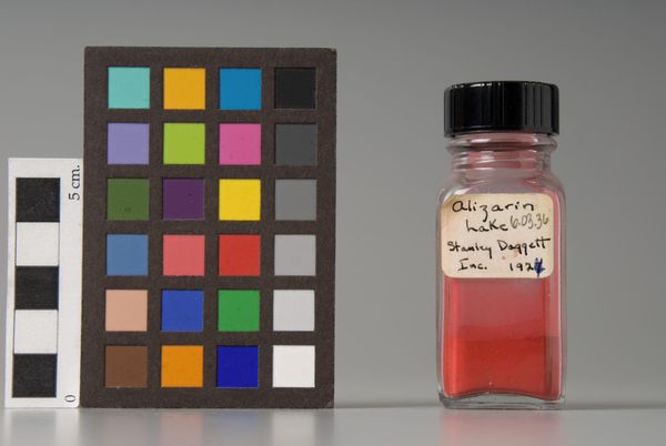 Curator: Here we have "Golden Cadmolith #768," a pigment manufactured by the Chemical and Pigment Company. Editor: It's striking. The saturated yellow pigment in that little jar just pops, especially contrasted with the color chart beside it. Curator: This pigment and the chart together really make us think about the systems of color and how they are managed and regulated. It’s a study in standardization, isn't it? Editor: Exactly! It's also about labor, how these materials are produced, and the artistry that goes into the creation of even the most basic of colors. Curator: Looking at this through a cultural lens, I wonder what the implications are of a single entity dictating color standards and what impact that has on artists and creativity. Editor: And for me, seeing the physical jar, I think about the entire social process that brings pigment into being from resource extraction to artistic consumption. It's a really fascinating piece!