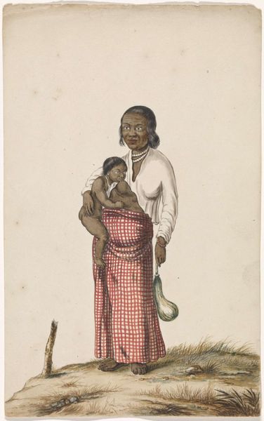 Editor: This drawing, "San-huishouden met vuur en kookpotten" – A San Household with fire and cooking pots – is by Robert Jacob Gordon, possibly made between 1779 and 1781. It’s a coloured pencil drawing depicting everyday life. The composition is simple but intimate. What can you tell me about its historical context? Curator: Well, this image, ostensibly a genre painting, participates in a complex history of representation. Gordon, as a commander in the Dutch East India Company, documented what he saw as "native" life in Southern Africa. How do you think the socio-political power dynamics of colonialism might influence this image, even at the level of its seemingly objective portrayal? Editor: It feels a bit... clinical. Like he's observing them as specimens. Is that a fair reading? Curator: It's perceptive. The drawing itself becomes a tool of knowledge production within a colonial framework. Consider the choices Gordon makes – the focus on the domestic sphere, the positioning of figures. What do these details communicate, and what perspectives might be missing? How do you think viewers in Europe might have perceived this work versus those within Southern Africa, both then and now? Editor: I suppose it presented a picture of an "other" to a European audience, reinforcing ideas about civilization and primitivism, while simultaneously ignoring the complexities of San society and their interactions with the outside world. Curator: Precisely. And today, its presentation in a museum raises questions about whose voices are centered and how we grapple with the legacy of colonial representation. It’s a historical artifact that reminds us that what gets represented, how, and by whom is laden with significance. Editor: So, seeing it today isn't just about appreciating the technique; it's about questioning the lens through which we’re seeing it. That really changes my initial perception. Curator: Indeed. Examining this artwork through a socio-historical lens urges us to think critically about art’s public role.