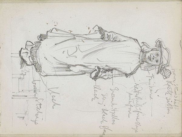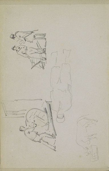 George Clausen created this pencil sketch, 'Marker vrouw bij een pomp en een meisje in Urker klederdracht', sometime between 1852 and 1912. At first glance, it captures a seemingly simple scene of women in traditional Dutch clothing. However, this work also offers a glimpse into the social fabric of the Netherlands during the late 19th and early 20th centuries. Clausen, influenced by the Realist and Impressionist movements, often depicted rural life and working-class individuals. In this context, the traditional garb worn by the women speaks to their cultural identity and perhaps their socio-economic status. The inclusion of a water pump could symbolize the daily labor and resilience of these women. The sketch, with its raw and unrefined quality, evokes a sense of immediacy and intimacy, inviting viewers to reflect on the lives of these women and the historical forces that shaped their identities.