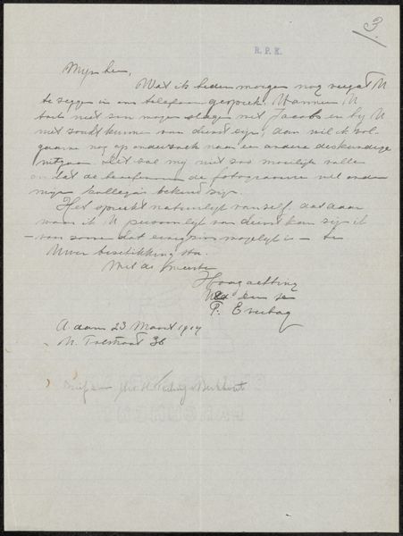 Curator: Okay, so we're looking at "Brief aan Jan Veth," potentially from 1898, an ink drawing on paper. Editor: Yes, exactly. The letter is incredibly intimate—it’s just the artist’s words to Jan Veth. What catches your eye about this work? Curator: Oh, where to even begin! It's less about *seeing* in the traditional sense, and more about *listening* to the echoes. The paper itself whispers stories—think of it, held in someone's hand a century ago, confiding thoughts, arguments, maybe even secrets! Do you think about who Jan Veth might be and why he would receive this letter? Editor: Possibly a friend? A colleague? Perhaps someone who’d understand the references in the writing... Curator: Precisely. It's a visual relic, you know? We piece together the fragments of intent. Editor: It's like archaeology with words, trying to unearth meaning from faded ink. Curator: Consider the artistry—the precise loops and dives, the confidence of each stroke. Calligraphy elevated! It reveals the author's character, a snapshot of their mind in motion. Don't you think handwriting itself is its own kind of portrait? Editor: It definitely has a kind of vulnerability about it. It seems much more human to me, almost like meeting the artist, than something digitally rendered, even though I can't read the actual words. Curator: Beautifully put. We learn to *read* not just text, but intent, history. A simple letter becomes a doorway. Editor: It makes you think about what our digital communications will look like centuries from now! Curator: Indeed! Will future generations find poetry in our pixels, I wonder? A fascinating thought to ponder.