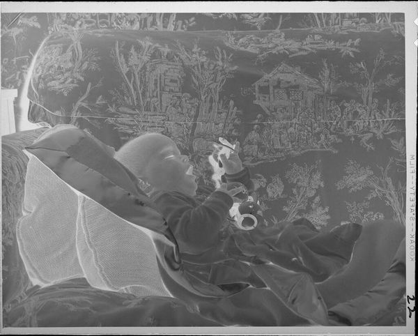 Curator: It's a stark image, isn't it? This is John Deusing's "Untitled (portrait of a deceased man, 'Daddy')". The dimensions are about 8 by 10 inches. What strikes you immediately? Editor: The sheen. The satin lining of the coffin—that's deliberate luxury, a constructed presentation for public consumption. The labor involved in producing such a textile contrasts sharply with the stillness of the figure. Curator: Absolutely, the presentation is key. It's an attempt to soften the stark reality, perhaps? I find myself wondering about the relationship, the "Daddy" embroidered on the lining... Editor: Embroidered, yes—more labor, more hands involved. It’s about how death becomes a commodity, how grief is performed through material objects. Curator: And the photograph itself becomes another layer of mediation, a permanent, reproducible object. It reframes the entire grieving process. Editor: Indeed. It makes me consider the industry of death—the economics of mourning. Curator: It is a potent reminder of the complex interplay between loss, memory, and the objects we create around them. Editor: A sober reminder of the tangible work behind even the most intangible emotions.