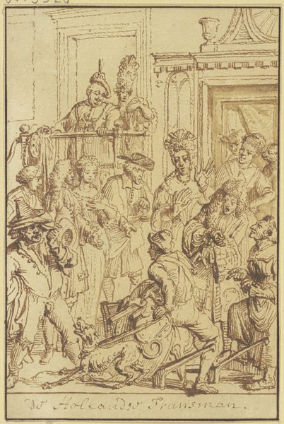 Editor: Here we have an intriguing print, Lazarus at the House of the Rich Man, dating back to 1637. The artist remains anonymous, and the medium appears to be woodcut and engraving. I’m immediately struck by the stark contrast between the opulent interior and the glimpse we get through the doorway of what appears to be poverty. What's your take on it? Curator: It’s fascinating how this print engages with the public role of art. Look at the placement of the figures. Lazarus is literally at the doorstep, highlighting the social divide. This isn’t just a scene; it’s a commentary. How do you think the baroque style contributes to the political message? Editor: Well, the Baroque period is known for its drama and emotional intensity. The way the scene is arranged, almost staged, seems to amplify the disparity. The rich man's dismissive gesture, the abundance on the table – it all points to a societal critique. Curator: Precisely! The image of the rich man is presented, critiquing the existing socioeconomic system. Furthermore, prints like this were widely circulated, making art accessible beyond the elite circles. How does this accessibility affect our understanding of its purpose? Editor: I guess that means it was less about a single patron's taste and more about conveying a broader message to a wider audience, shaping public opinion, perhaps? Curator: Exactly. Consider the monkey and the dwarf, as well – they serve to diminish, to render farcical the world of riches. By employing common narratives in easily distributable forms, imagery has the power to persuade. Does thinking about the political climate of the time shift how you view it now? Editor: Absolutely. Knowing it was meant for broader consumption reframes my perspective. I now see it as more of a social call to action. Curator: I agree. This artwork prompts us to analyze socio-political history and how these considerations influence art’s reception. It is about class difference. Editor: It's been very eye-opening. Thanks to understanding the historical context, it shifted my focus entirely. Curator: And I'm left thinking more deeply about art’s capacity to be an agent for societal change.