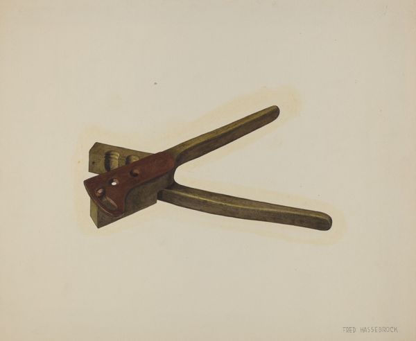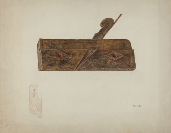 Editor: Here we have "Plane" by Max Unger, created in 1939 using watercolor on paper. It depicts… well, a plane, the woodworking tool. There's a stark simplicity to it, almost clinical, and the rendering of the wood grain is quite detailed. How should we interpret this? Curator: The choice of a mundane object during 1939 is significant. Consider the socio-political landscape. With the rise of totalitarian regimes and impending war, everyday objects often became potent symbols. Why choose to depict this particular tool so carefully, at this specific historical juncture? Editor: Maybe to highlight craftsmanship and labor, especially as industrialization was changing production? Was there an artistic movement focused on that? Curator: Exactly. The Neue Sachlichkeit, or New Objectivity movement, springs to mind. It emerged in Germany after World War I as a reaction against Expressionism's emotional excesses. Artists turned to a more realistic and detached representation of the world. They aimed to portray the social realities and the changing industrial landscape, holding it up to scrutiny. Would you say this artwork critiques or celebrates labor and craft? Editor: I think there’s an appreciation of craft here, the detail suggests a respect for the tool itself, although it is slightly removed through being a watercolor illustration rather than the thing itself. I didn’t think about it in relation to New Objectivity. Curator: The context is vital. Unger might have been making a statement about the value of skilled labor amidst the growing mechanization and looming global conflict. Editor: Seeing it that way gives the piece much more depth than just a simple object study. Curator: Indeed. By understanding the historical forces at play, we can decode the multiple layers of meaning embedded in seemingly ordinary images. I appreciate how thinking through this object highlights broader social contexts. Editor: It certainly enriches my understanding. Thank you for shedding light on its historical and social relevance.