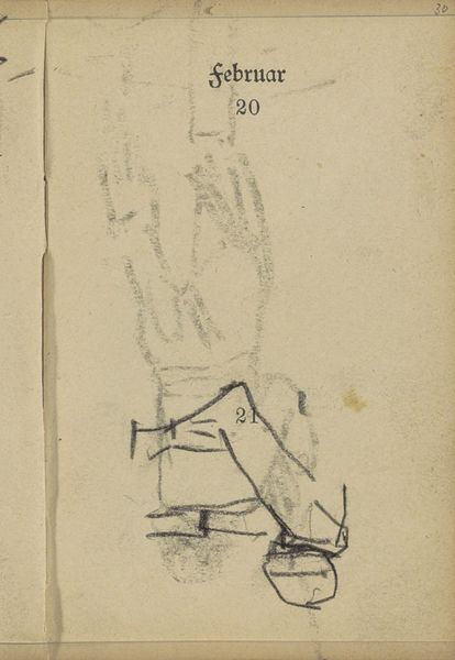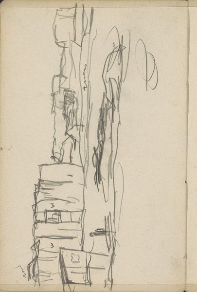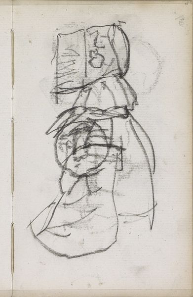 This sketch, by George Hendrik Breitner, uses graphite to capture a figure with an object. The composition centers on the figure, rendered with swift, economical lines, characteristic of Breitner’s approach to capturing fleeting moments of urban life. The linear structure of the drawing, with its emphasis on the contour, creates a sense of immediacy. Breitner is less concerned with volume, and more interested in the relationship of line and form to evoke a sense of movement and presence. Each line is a signifier, pointing not just to the form it delineates but also to the broader context of artistic representation, as well as how we perceive our surroundings. The sketch reflects a shift in artistic values—away from detailed representation towards capturing the essence of a subject. This approach destabilizes the traditional role of art as a mirror, instead engaging with the act of seeing itself, suggesting that art's meaning lies in the dynamic interpretation of form, not merely in its replication.