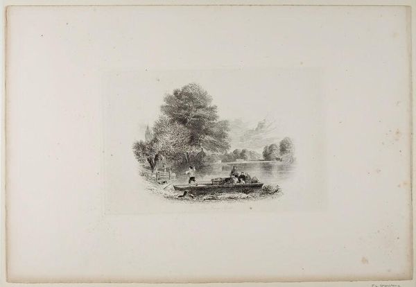 Editor: This is Jean Jacques de Boissieu's "View near Ambronay." It's a print, quite small, and evokes a sense of tranquility. What compositional elements stand out to you? Curator: Notice how the arrangement of light and dark, the strategic positioning of forms, creates a balanced yet dynamic composition. The interplay between the architectural structure on the left and the organic forms of the trees on the right is intriguing. Editor: Yes, I see that balance now. Is there a theoretical framework that helps you interpret the lines and shapes? Curator: Semiotics could be useful here. The lines and shapes are not merely representational; they function as signs within a visual language. Each element contributes to the overall meaning, guided by principles of visual syntax. Editor: That's fascinating. I'll have to look into that further. Thanks! Curator: My pleasure. It's rewarding to consider the visual grammar at play.
