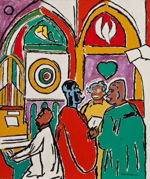 Salman Toor painted this scene, "The Green Bar," with what looks like oil on canvas, and the first thing I notice is the way he builds up the image with layers of thin, washy color. The paint handling is pretty direct, not fussy, but the image is built up from lots of different angles. The way he layers the figures and objects on top of one another creates a sense of intimacy and density. The background has a drippy, almost abstract quality, and the figures are rendered in a more representational way, but there's still a looseness and fluidity to the brushstrokes. Look at the way he captures the folds and creases in the white shirt of the figure being embraced, using delicate, almost pastel-like hues. Toor's work reminds me a little of early Alice Neel, but with a decidedly queer sensibility. I love how he embraces ambiguity and allows the painting to unfold organically.