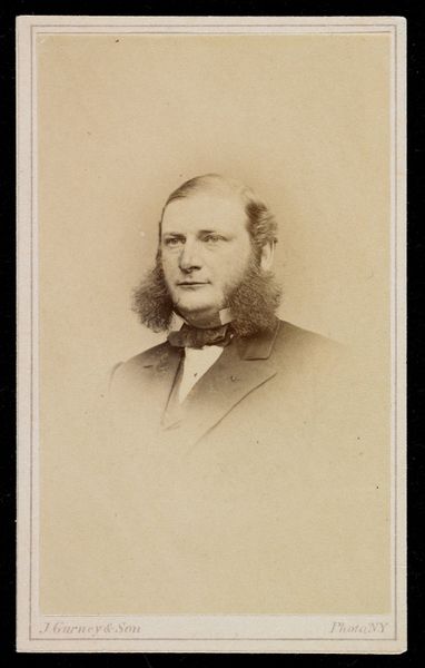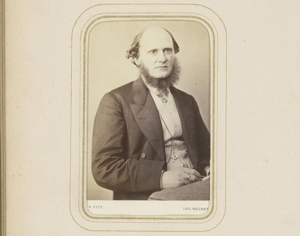 This is Adolphus Henry Augustin Wing’s, "Portret van een man met baard". Though undated, it's likely this photograph was produced during the height of the Victorian era. Wing’s portrait exists within a visual culture deeply shaped by notions of masculinity, class, and social standing. The man's gaze is direct, but it doesn’t quite meet ours; there is a subtle defiance which prompts reflection on the politics of representation. In this era the photographic portrait was a signifier of status, and here we see the trappings of bourgeois identity: the neatly groomed beard, tailored suit, and composed demeanor. Yet, such images often glossed over the complex realities of individual experience and the societal constraints of the time. Consider the unspoken narratives of labor, domesticity, and empire that underpin the creation and circulation of such images. How does the image shape or reflect societal issues, and what does it mean to encounter this quiet, contained portrait today?