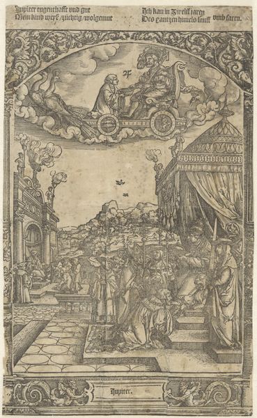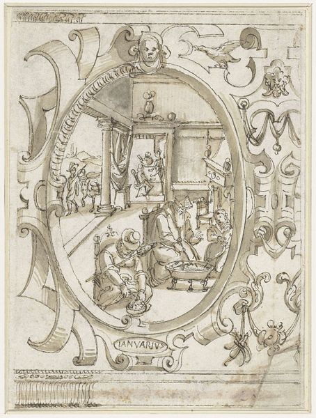Curator: This pen and ink drawing is entitled “The Prodigal Son,” etched by Daniel Lindtmayer sometime between 1552 and 1607. It is currently held at the Metropolitan Museum of Art. Editor: What strikes me immediately is the overwhelming level of detail, almost claustrophobic. The artist has chosen to dissect and display the narrative through segmented vignettes. Curator: Precisely. Notice how Lindtmayer divides the paper into distinct registers, each dedicated to a phase in the biblical parable. It is essentially a structural analysis of the story. The composition avoids a conventional, linear narrative; instead, it opts for a fragmented, almost cyclical representation. Editor: Absolutely. And within those segments, the iconography is rich. Consider the scene of the prodigal son among the swine. Pigs, historically symbols of greed and impurity, underscore the son's degradation. Then we have, higher in the register, his departure with his inheritance juxtaposed against musical revelry—a visual encoding of excess. Curator: A crucial formal element, I believe, is the density of line work. Lindtmayer's mastery of the pen is evident in his creation of texture and volume, the intricate shading of faces to architectural features. It demonstrates sophisticated control over value. Editor: But look closer at the archways. There are more subtle allusions to familial strife throughout. This isn’t simply the story of repentance, but perhaps also resentment. Consider, too, the symbolic importance of the father’s costume as a visual signifier of patriarchy in Early Modern Europe. Curator: It seems he is definitely embedding social commentary as well. Editor: It’s interesting how the rigid borders contrast with the rather emotionally volatile content; one expects to see some kind of spillover in an artwork depicting the prodigal son. This all leads one to believe there could be a moral imperative encoded here. Curator: Lindtmayer's piece, from a purely structural perspective, is a complex dance between form and content, showcasing his ability to distill the parable into digestible visual components. Editor: A very neat, economical synthesis of symbol, form and historical moment indeed.