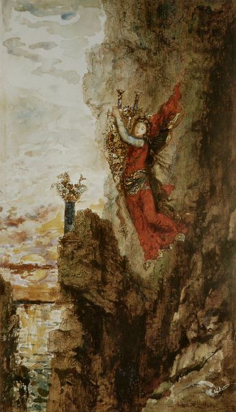 Gustave Moreau painted this piece, "The Sphinx Defeated," in the late 19th century, a period marked by significant social and cultural transformations in France. Moreau, situated within the Symbolist movement, often drew upon mythology and biblical themes, reinterpreting them through a modern lens. Here, we see Oedipus standing triumphant over the defeated Sphinx, bodies of the Sphinx's victims are scattered around him. In many ways, it’s a story about gender, and the monstrous-feminine. The sphinx, a hybrid creature is often represented as female. She is punished for stumping men with riddles they cannot solve. Moreau creates a space to confront the male gaze, the power dynamics inherent in knowledge, and the fear of the unknown. He highlights how societal norms and power structures can demonize the unfamiliar. Ultimately, this painting speaks to the emotional weight of overcoming personal trials, and the complex ways in which society defines heroism and monstrosity.