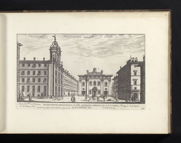 This print, made by Alessandro Specchi in the early 18th century, depicts the courtyard of Palazzo Montecitorio in Rome. It's rendered in etching, a printmaking process involving biting lines into a metal plate with acid, inking the plate, and pressing it onto paper. The material properties of etching – its capacity for fine detail and tonal variation – allowed Specchi to capture the grandeur of Carlo Fontana’s architecture. Notice how the crisp lines define the perspective, drawing the viewer's eye into the space. Etching was crucial in disseminating architectural ideas at this time, making designs accessible to a wider audience. The print itself can be understood as a commodity, produced and sold in multiples. Consider the labor involved: the skilled artisan carefully incising the plate, the printer operating the press. This reflects a highly developed division of labor and the commercialization of art in early modern Europe. Appreciating this historical and material context enriches our understanding, challenging the notion of art as purely individual expression.