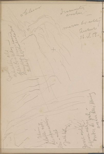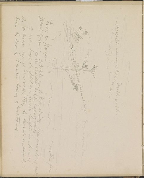 This is Johannes Tavenraat's "Heuvellandschap met bomen" – or "Hill Landscape with Trees" – a pencil drawing now held at the Rijksmuseum. Tavenraat, born in Rotterdam during the Napoleonic era, lived through a period of immense social and political change in the Netherlands. The sketch offers us an intimate glimpse into the Dutch countryside. More than just a neutral depiction, landscapes at this time often served as powerful symbols of national identity. They captured the essence of the Dutch homeland and its cultural values. Notice the quick strokes, which emphasize the immediacy of the experience. Given the period, this landscape moves beyond traditional representations. Instead it evokes a sense of being present in nature, an emotional connection to the land itself. The act of sketching itself suggests a personal, almost reverent interaction with the environment. Tavenraat invites us to consider our own relationship with nature. How do our surroundings shape our sense of place and belonging?