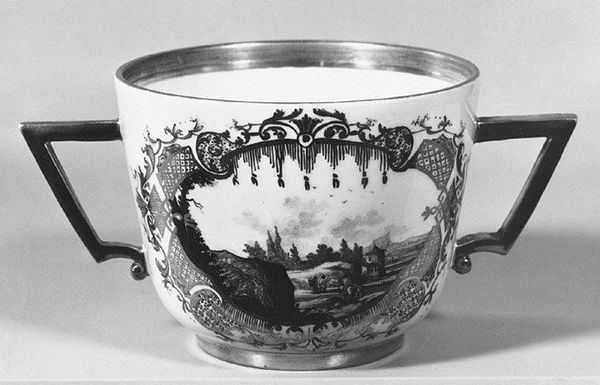 This silver beaker was crafted by Al'derman Petrov Fiodor in the late 18th century, presenting an interplay of decorative opulence and narrative intrigue. The beaker’s structure is defined by an embossed central scene enclosed within a scrolling, foliate cartouche, all set against the smooth, reflective silver surface. The composition focuses attention on the figures enacting a scene within a boat. Above, Cyrillic text is carefully etched, adding another layer to the artwork. The reflective quality of the silver enhances the intricate detailing, yet also subtly distorts the surrounding environment, integrating the beaker into its space. The artist invites us to decipher the narrative and appreciate the craftsmanship. The beaker functions as a microcosm of cultural and artistic values, reflecting the period's aesthetic preferences and philosophical underpinnings. Its complex semiotic layering creates a rich ground for ongoing interpretation.