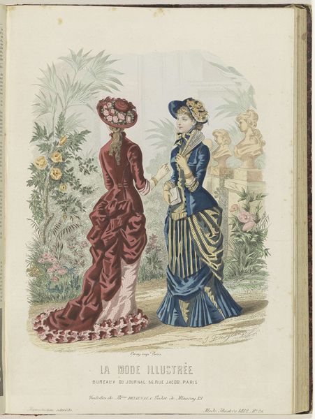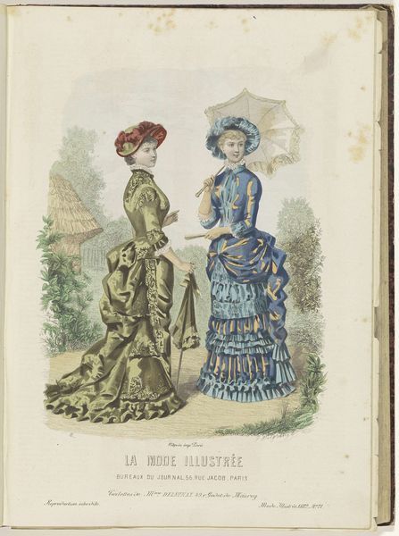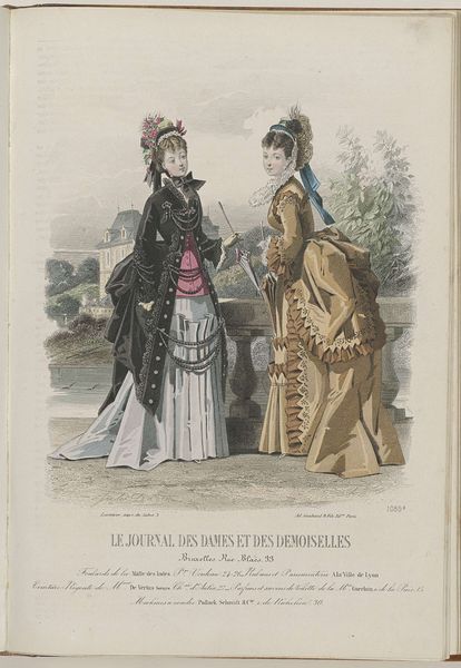 In 1882, Firmin-Didot & Cie created this print for *La Mode Illustrée, Journal de la Famille,* a French fashion magazine. This image encapsulates the aspirations and constraints of bourgeois womanhood in late 19th-century France. The magazine itself was an institution that both reflected and shaped social norms, dictating the styles and behaviors deemed appropriate for women of a certain class. The emphasis on family in the journal's title highlights the central role women were expected to play within the domestic sphere. The elaborate and restrictive clothing worn by the figures embodies the physical and social constraints placed upon women. The clothing denotes status, but it also limits mobility and freedom. To understand this image fully, we can examine fashion plates and advice columns from the period. These sources offer insights into the values, anxieties, and power dynamics that shaped women's lives in 1880s France.