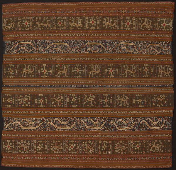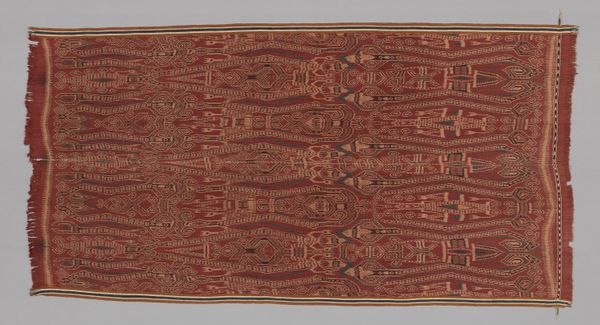 Editor: We're looking at a textile piece, titled "Carpet," dated before 1473 and currently residing at the Art Institute of Chicago. It is by an anonymous artist, incorporating fiber art and weaving techniques. There’s a powerful feeling of geometric order combined with intricate border designs... what's your interpretation of it? Curator: This carpet embodies more than just decorative art; it’s a powerful signifier of cultural exchange and social standing. Carpets like this served as potent symbols of wealth and influence. Have you considered its potential as a political object? Editor: A political object? Tell me more about it. Curator: Think about who commissioned it and why. Carpets often marked significant occasions or affirmed diplomatic relationships. Its creation and display broadcasted wealth and sophistication but also served as tools for asserting social power through artistic patronage. Editor: That is quite fascinating. I never really considered carpets as politically charged objects. Curator: Its value stems not just from its materials and craftsmanship but also from its ability to communicate messages about taste, power, and cultural identity. Think about the visual vocabulary too – what does the geometry suggest in the context of Islamic art and its patronage? Editor: This sheds new light on my understanding. Looking beyond pure aesthetics allows the observer to delve deeper. I am rethinking how I understand this “Carpet.” Curator: Indeed. Appreciating its impact and considering who has the power to present, conserve, and interpret these art forms adds more meaning.